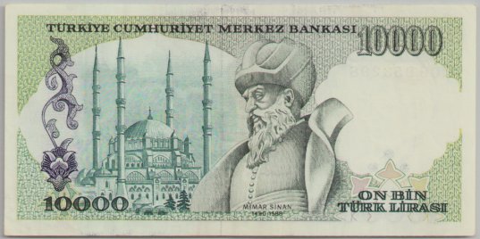 Arka yüz: Mimar Sinanın portresi ve Selimiye Camii (EDİRNE)